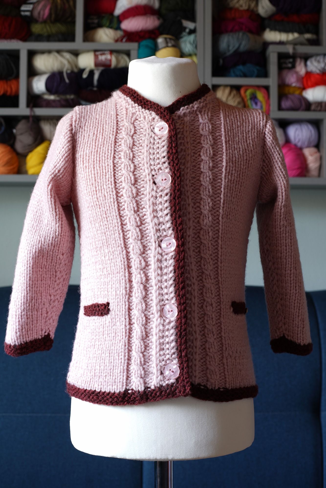 Bei dieser niedlichen Jacke sind die Zöpfe als Borte gearbeitet. Sie ist pflegeleicht und kann in vielen Farben angefertigt werden.